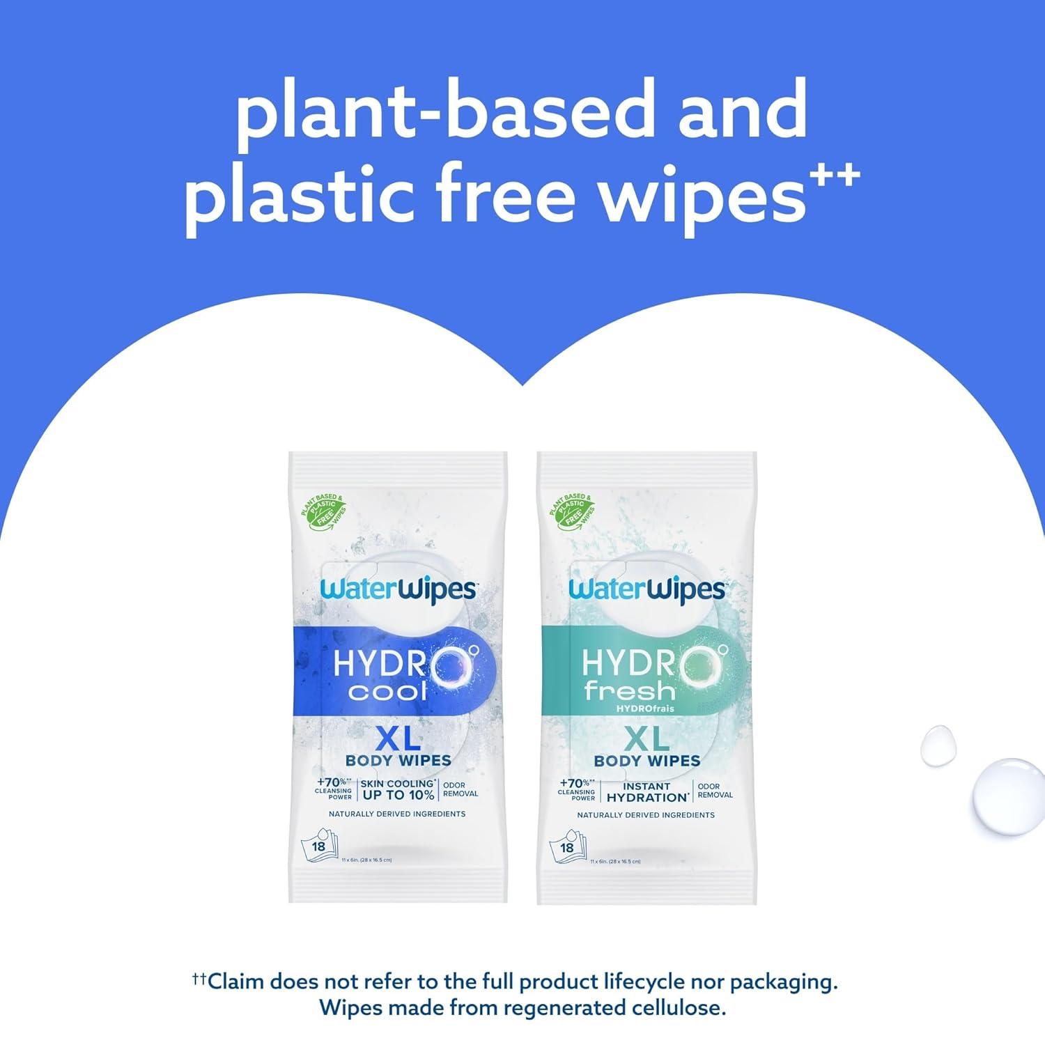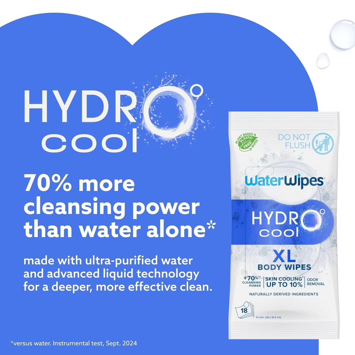 Stay fresh, cool, and recharged whenever and wherever you need it. WaterWipes HydroCool Cooling Wipes, 18 Count (1 Pack), are extra-large body wipes designed to deliver an instant cooling sensation and a deep, effective clean. Powered by our most advanced liquid technology, each wipe contains ultra-purified water with over 70% more cleansing power* than water alone, plus naturally derived ingredients like ginger mint, cucumber, and saccharomyces to help calm and refresh skin. HydroCool wipes are shown to reduce skin temperature by up to 10%**, offering a noticeable 2-degree cooling effect and up to 4 hours of odor control. Whether you're at the gym, on the move, or working outdoors, these wipes are made for full-body use and suitable for all skin types, even the most sensitive. Because feeling cool and clean shouldn’t have to wait. *versus water **Instrumental test, 25 participants, Ireland, 2024.