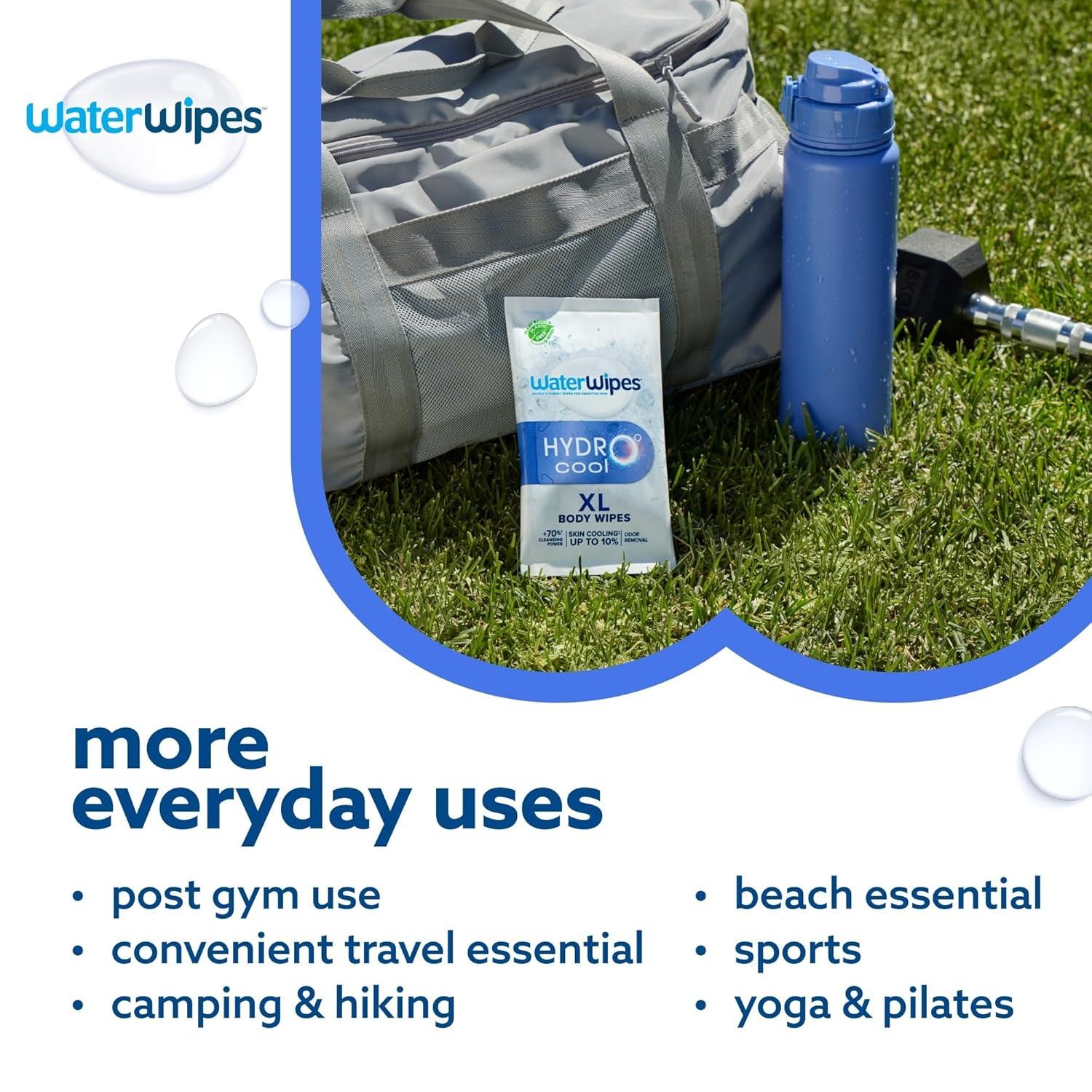 imageWaterWipes HydroCool Cooling Wipes XL Body Cleaning Wipe Stay Fresh ampamp Cool OntheGo Instant Skin Cooling Odor ampamp Sweat Removal Ideal for Gym Travel ampamp Outdoor Use 18 Count 1 PackUnscented