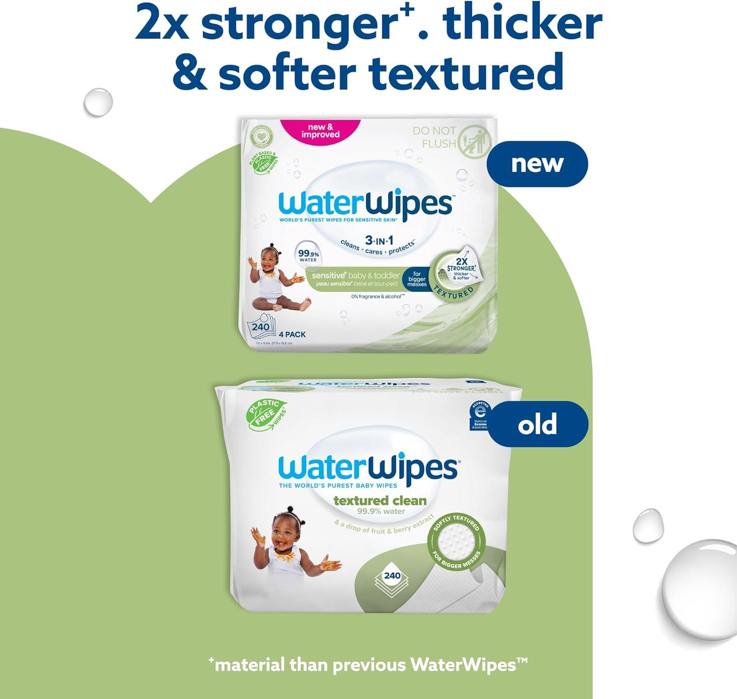 2X STRONGER: Upgraded for more versatility, WaterWipes are now thicker, softer & 2x stronger with a textured surface to tackle tougher messes while keeping the same, trusted purity.